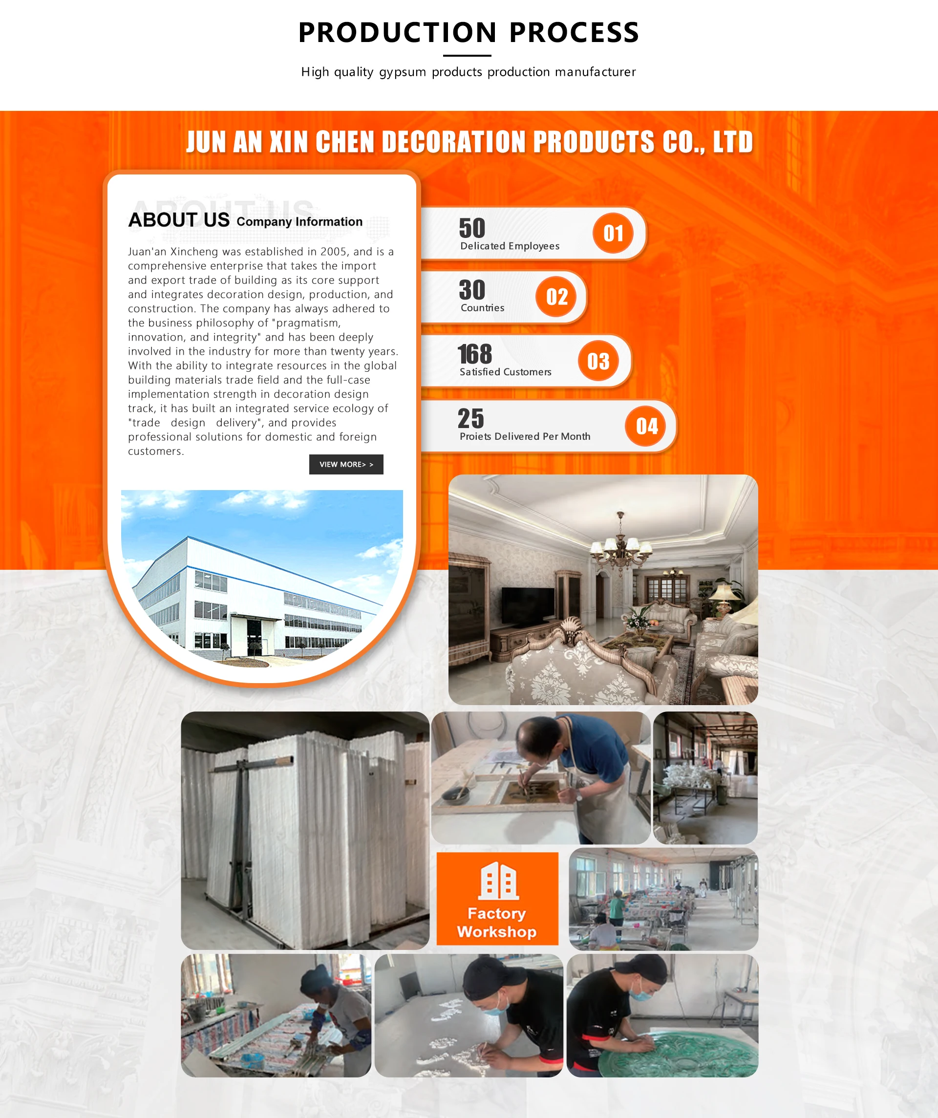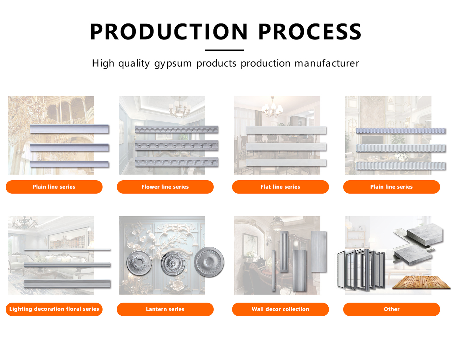 Productos principales:Productos de yeso, Productos de yeso, Cornisas lisas, Cornisas florales, Rosas de techo